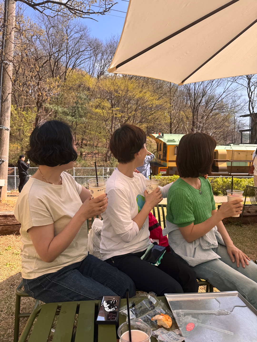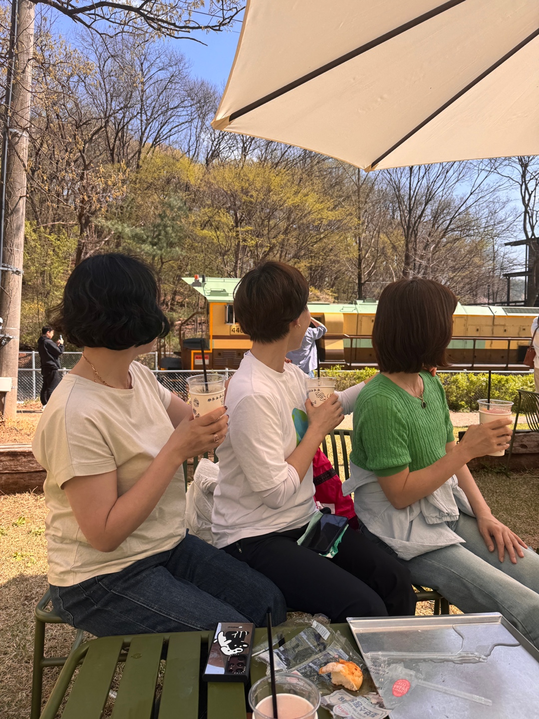 야외 테이블에 앉아, 기적소리와 함께 지나가는 기차를 바라보며 마시는 커피~ 휘우커피는 색다른 경험을 제공한다.